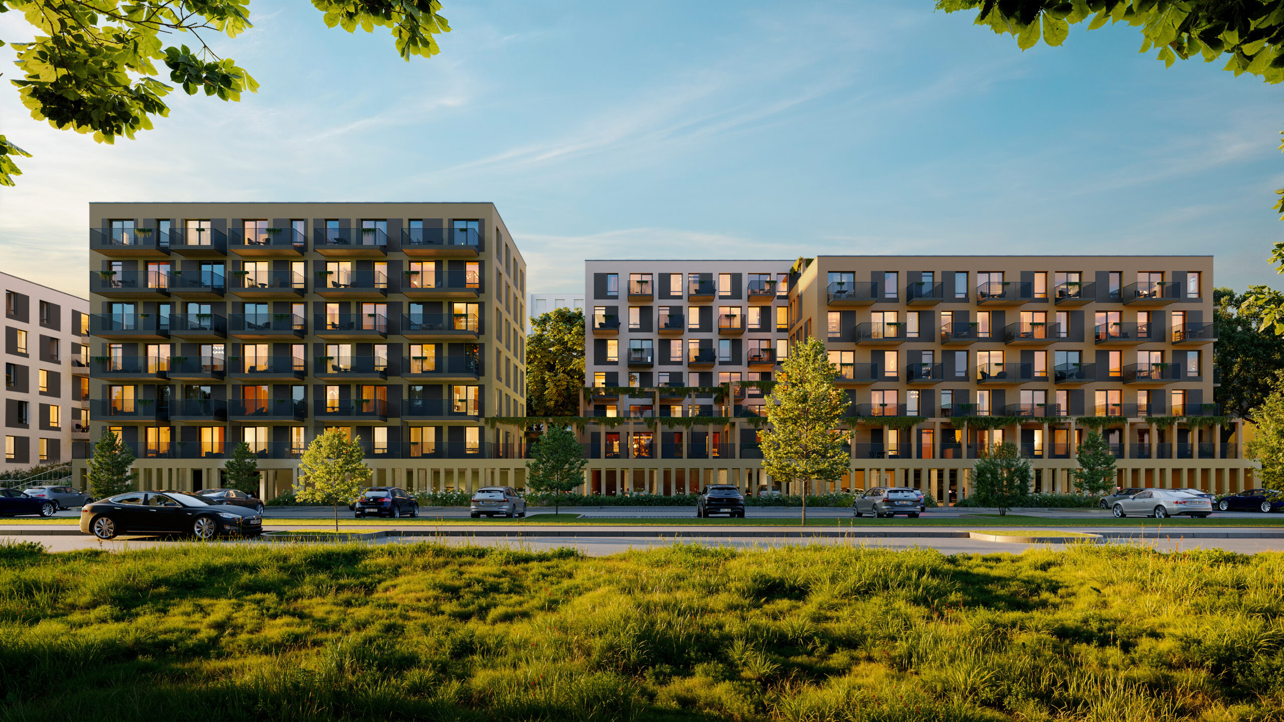 Greta sklypo planuojamas 3,6 ha parkas, plėtojama dviračių ir pėsčiųjų takų infrastruktūra su pėsčiųjų tiltu per Vakarinį aplinkkelį, kuriuo bus galima patogiai nukeliauti iki Buivydiškių tvenkinių.